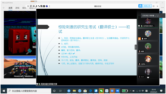 在南京大学就读法语笔译专业的19届毕业生周昊瑾和今年刚刚考上大连外国语大学的20届毕业生吴剑星则为同学们介绍了各自考研过程中的经历,就如何备考、如何选择院校和专业等员工最关心的问题分享了经验。