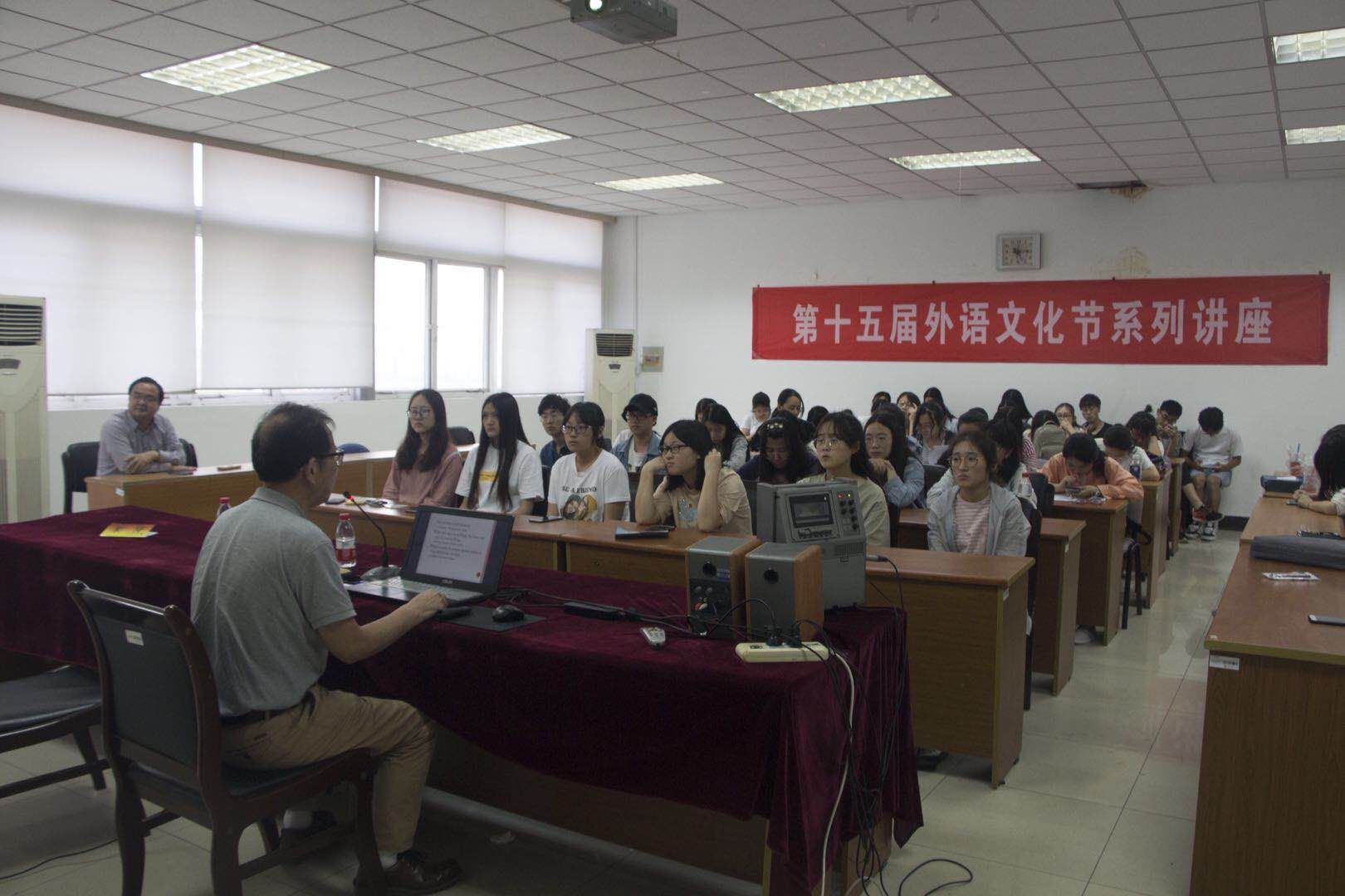 张教授从英语写作的本质出发,旁征博引,深入浅出,讲述了英语写作是英语各项技能的综合体现,绝非一日之功,需长期日积月累,厚积薄发。接着,他又结合英语写作具体实例,从词句段章以及文体风格的角度,讲解英语写作的技巧和注意事项。最后,张教授还耐心地回答了同学们提出的问题。