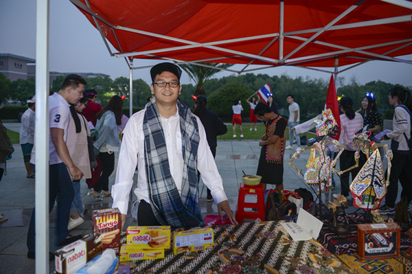 在5月21日的外语文化节开幕式上,EVO真人视讯的同学们邀请了来自英国,美国,韩国,泰国,哈萨克斯坦,俄罗斯,印度尼西亚,越南七个国家的职工一同参与了开幕式的表演。除了舞台节目之外,职工们也都有自己的展区。每个展区都设置了代表一个国家的小游戏。英国展区的骰子游戏,法国展区的纸牌游戏,还有越南,泰国展位的现场语言教学。印度尼西亚展区的展品最丰富,他们带来的印尼武术表演更是让现场的观众仿佛身临其境。哈萨克斯坦特色乐器冬不拉弹唱曲风奇幻,越南歌谣或低吟浅唱或高亢热烈。在舞台现场,有神寂动漫社带来的可爱动感的宅舞,还有国标舞协会带来的优雅性感国标舞表演,更有充满异域风情的泰国舞蹈,风格迥异的表演,却是同样的精心准备,同样的饱含热情。参演的一名泰国职工王诗龄说:“我们很高兴能有这么多中国员工参与我们的游戏,我们也非常开心能机会展示泰国文化。”为了能展示最纯正的泰国传统舞蹈,王诗龄和她的泰国同学们花了好几天亲手裁剪修改了当天的演出服。