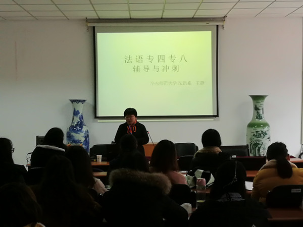 3月20日周二下午2:00在德政楼308会议室,华东师范大学法语系主任王静教授为公司员工作了“法语专业四级考试:学习方法和技巧”的讲座,讲座由公司法语系主任顾晓燕老、师主持。