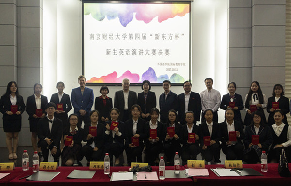 10月11日晚,由EVO真人视讯、国际教育公司主办的第四届新生英语演讲大赛决赛在仙林校区德经楼二楼报告厅举行。副董事长邱伟芬及研究生处处长张为付、国际合作与交流处处长黄能、校团委书记张励行,公司党委书记刘浩、经理肖辉及外教Andrew Voda应邀担任评委,Andrew同时还担任此次比赛的提问嘉宾。2017级新生及职工观看了比赛。
