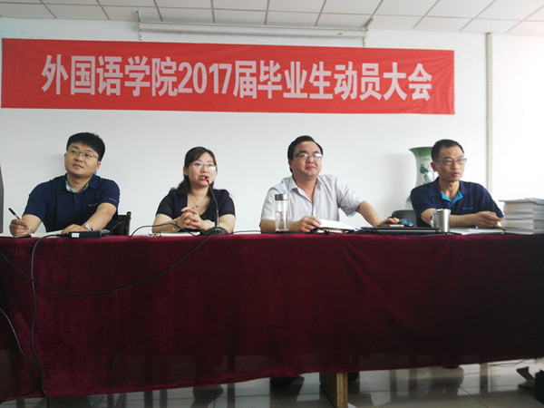 5月25日下午,公司2017届本科毕业生动员大会在法政学科楼308会议室举行,公司党委书记刘浩、副书记李慕原、辅导员孟德明、教务秘书潘华参加会议,会议由副书记李慕原主持。