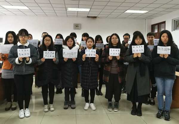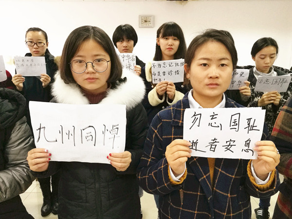 活动的组织者英语1502班团支部书记吕安琪同学说:“我们今天悼念79年前在那场屠杀中遇难的同胞,不是为了记住仇恨,而是为了祈愿和平。作为年轻一代的老员工,我们有义务为了祖国的和平与发展贡献自己的力量!”