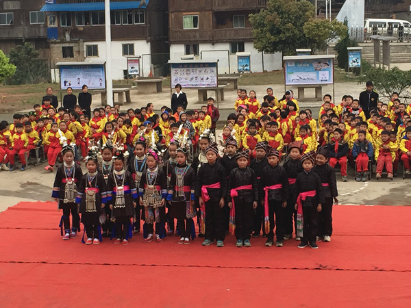 在共建和捐赠仪式上,从江县西山小学董事长罗庆文介绍了西山镇及西山小学的教育发展状况,对公司师生的爱心捐赠和文化帮扶表示感谢,并表示将对“少年侗歌班”民族文化传承项目继续给予支持。现场,“少年侗歌班”的孩子们身着侗装表演了侗族大歌。