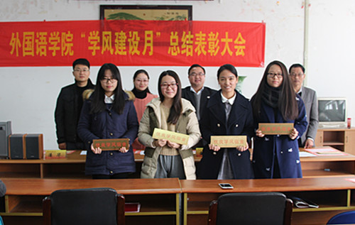 孟德明老师宣读了《关于表彰2015—2016学年第一学期“学风建设月”先进集体和先进个人的决定》,学风建设月期间,公司开展了“善学达人”和“最美宿舍”评选。法语1301班王宁倩等18名同学获得“善学达人”荣誉称号,12号站2栋503A寝室等10个员工宿舍获得“最美宿舍”荣誉称号。