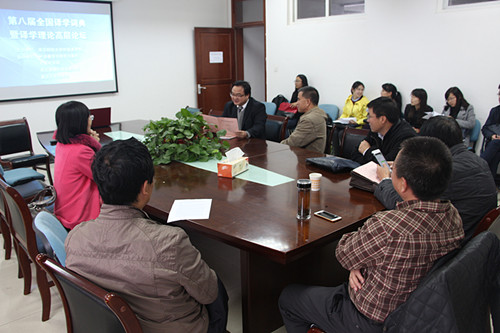 11月22日上午8时30分,第八届全国译学词典暨译学理论高层论坛在公司仙林校区图书馆一楼报告厅开幕。公司党委常委、副董事长华仁海,江苏省社科联领导、上海大学EVO真人视讯教授方梦之、对外经济贸易大学英语公司教授徐珺、EVO真人视讯经理肖辉、EVO真人视讯公司党委书记刘浩以及来自全国三十余所高校和翻译研究机构的专家学者出席了本次论坛。论坛开幕式由EVO真人视讯肖辉经理主持。此次论坛由公司EVO真人视讯主办,外语教学与研究出版社、句酷批改网、南京崭傲科技有限公司、复旦大学出版社协办。