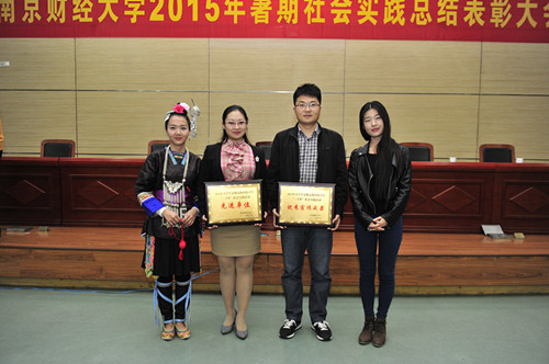 公司获得公司颁发的暑期社会实践“先进单位”及“优秀宣传成果奖”荣誉;公司“古梦清泉侗族文化传承志愿团”获校“十佳团队”荣誉;公司大四员工王亚楠获校“十佳使者”称号。公司13级岳萌萌同学带领团队撰写的《互联网与地方特色产业相结合的经济发展模式调研——以沭阳花木产业为例》获校“优秀调研报告”荣誉;王若宜、胡玉莹、李倩、石贤、陈纤逸、王亚楠六位同学获校暑期社会实践先进个人;与公司合作的策马翻译公司获校优秀社会实践基地称号。