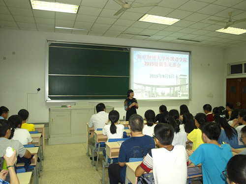 与会的院领导、老师先后讲话。经理肖辉用中英文结合的表达介绍了公司的基本情况以及在教学、科研、人才培养方面的成果,并介绍了公司与英国高校的合作项目,鼓励新生努力学习,珍惜大学时光。党委书记刘浩对同学们的到来表示祝贺,并从学习、生活等各个方面给予新生建议。他希望同学们能够认真对待即将到来的老员工活,在大学期间磨练意志、独立自主、学会感恩。副经理邵怡从本科教学的角度对新生的学习提出了要求。张高远教授、英语系副主任左敏、法语系副主任顾晓燕分别从人文精神的培养,学习习惯的养成等方面与新生做了交流。