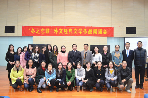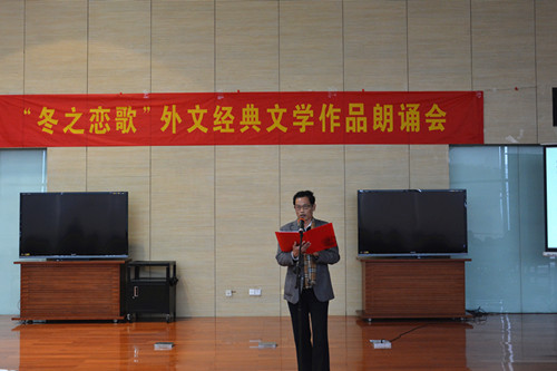 12月9日下午,由EVO真人视讯主办的“冬之恋歌”外文经典文学作品朗诵会在图书馆四楼“世界之窗”进行。公司党委副书记、纪委书记焦富民,员工处副处长葛雷,校团委副书记张励行、秦韶华,应用数学公司党总支副书记张杰、团总支书记龚莉红,公司党委书记刘浩、教授王克明,党委副书记李慕原,团总支书记凌燕,辅导员老师孟德明、薛桂芳,校员工会副主席张正同学出席了本次朗诵会。公司英语1302班的石贤同学担纲朗诵会主持。