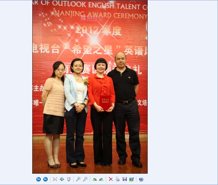 中央电视台‘希望之星’英语风采大赛南京赛区决赛评委主席、江苏赛区总决赛评委、肖辉教授再度应邀参加了颁奖仪式,并代表评委做大会发言和点评。2012年中央电视台‘希望之星’英语风采大赛江苏省组委会李亚君女士、南京朗文公司总裁孙洪涛先生、南京赛区组委会主任王薇董事长、大赛培训总监董维维女士为获奖老师颁发了奖状,也为肖辉教授颁发了“优秀评委奖”、“优秀指导教师奖”。
