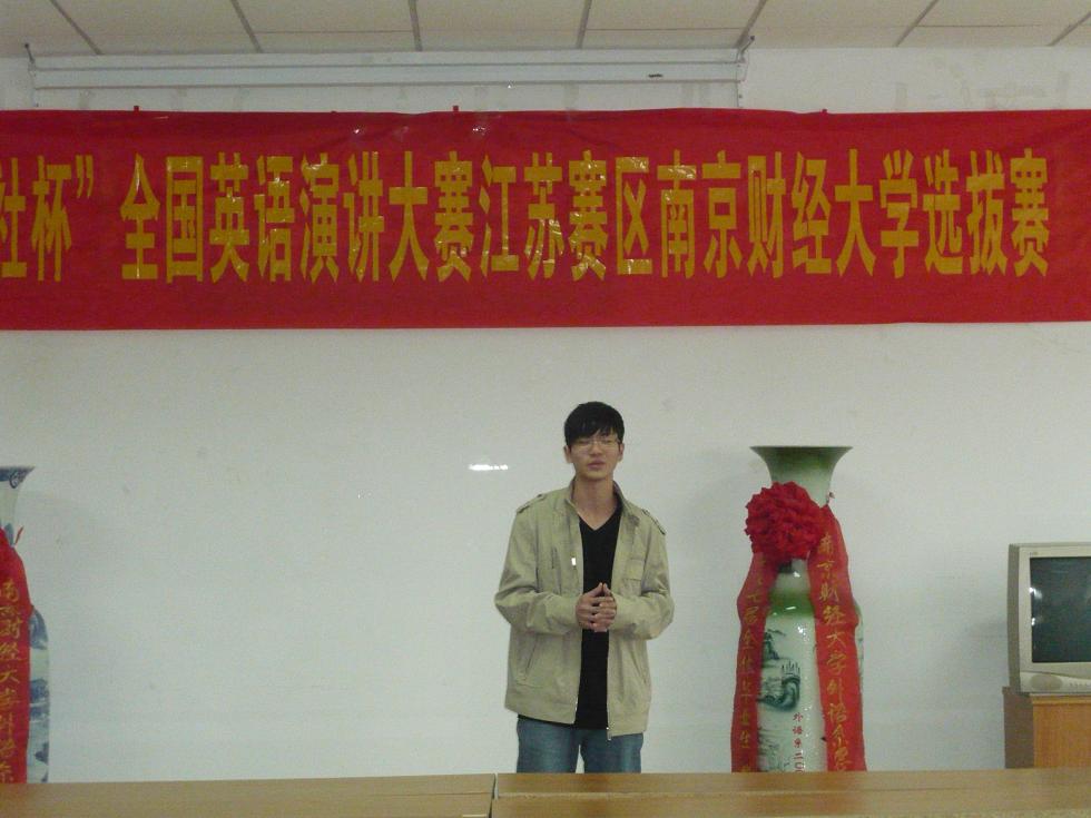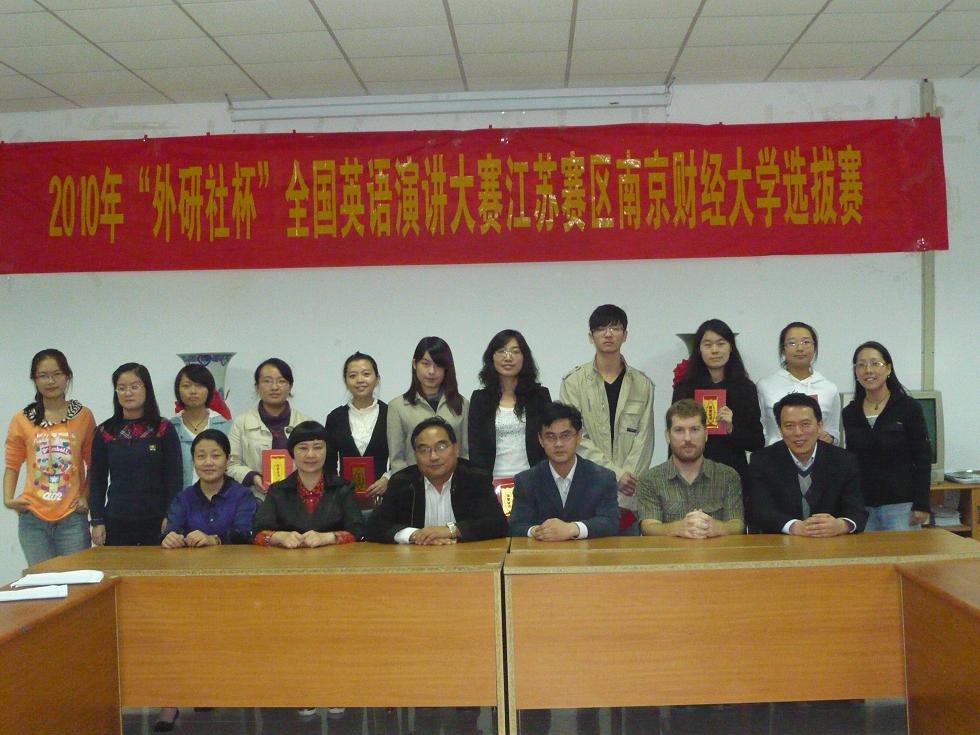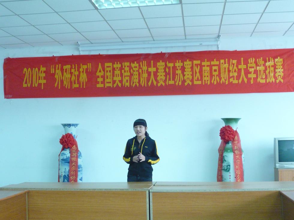 2010年10月13日14:00,2010年“外研社杯”全国英语演讲大赛江苏赛区EVO真人视讯选拔赛在专三308拉开帷幕。42位参赛选手带来了他们自选主题的精彩演讲。此次选拔赛有评委老师有经理王克明教授、党总支书记肖辉教授、国际合作与交流处黄能副处长,副经理孙勇彬教授、外教Devek和韩静老师。
