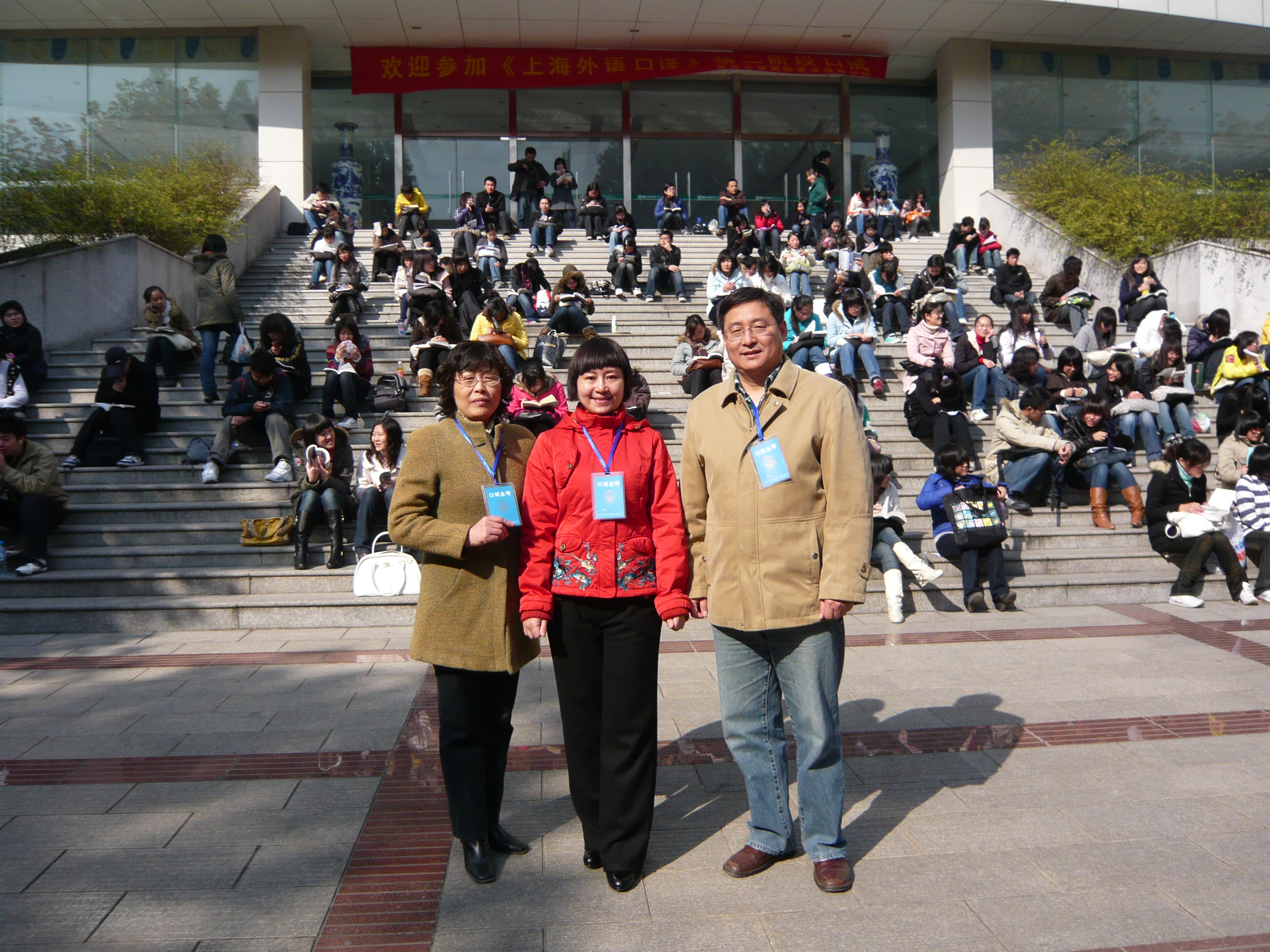 我系肖辉教授、张谨副教授和2007级研究生陶长安奔赴考场主考了中、高级口译证书第二阶段考试。