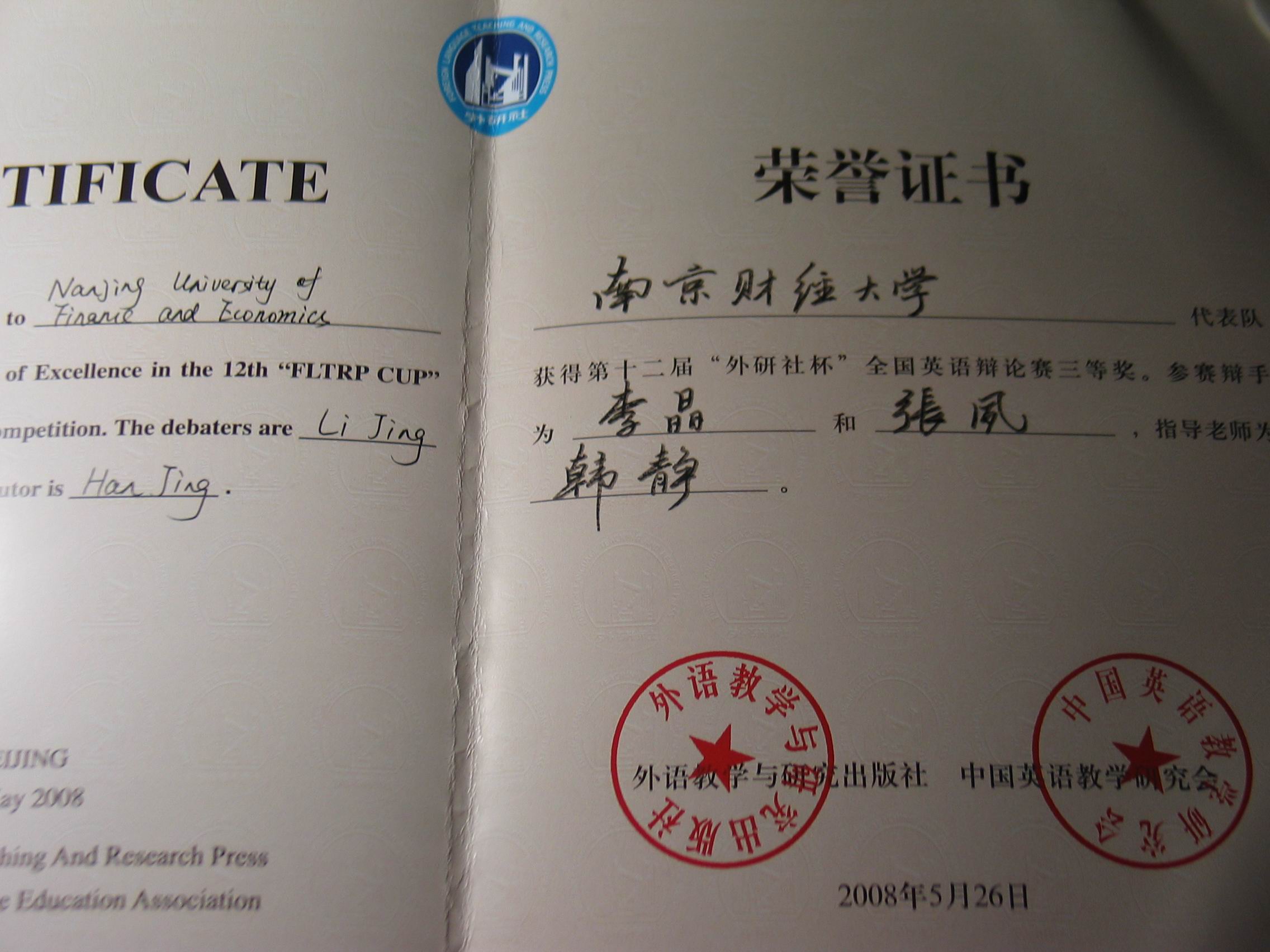 5月24日,公司代表队前往北京参加由外语教学与研究出版社主办的第12届“外研社杯”全国英语辩论赛的两位选手李晶、张夙和指导老师韩静载誉归来。“外研社杯”全国英语辩论赛是全国最权威、最具规模、最有影响力的英语辩论赛事。在此次比赛中,公司荣获三等奖,这是公司迄今为止参加此项赛事以来取得的最好成绩。