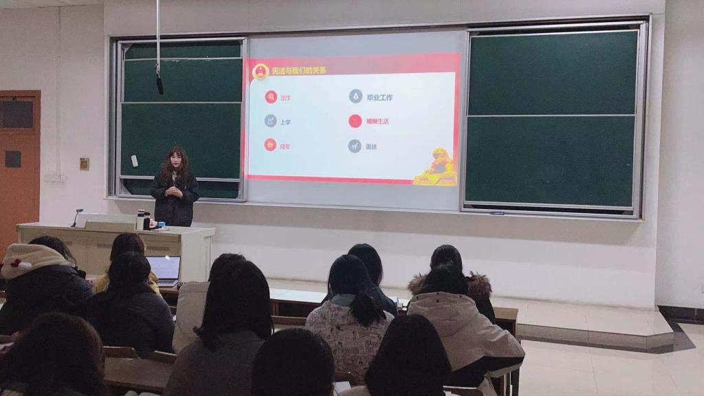 12月15日晚,公司在博观楼310举办了一场题为“老员工知宪学宪的必要性”的宪法知识讲座,特别邀请法公司优秀员工孙一盈为2020级全体员工讲述老员工知宪学宪的必要性,孙一盈同学先从生活出发引申向宪法规定的权利和义务,讲座内容丰富有条理,回忆自己从知法到懂法的过程,用自己的经历讲述宪法的重要性,并且通过举例给同学们阐释了“生活处处是宪法”的含义,孙一盈同学的讲述生动有趣,举例贴近生活,如:已成年的大一新生享有选举权与被选举权;在毕业后,员工会有自己的工作岗位,需要法律维护权益;婚姻以及婚后财产等等都需要婚姻法的保护等,她用简单而“接地气”的话语告诉大家:宪法时刻围绕在我们身边。同时,作为一名法学专业的员工,孙一盈同学用自己的专业知识为我们深刻讲述了知宪学宪的必要性,人人都应尊崇宪法、学习宪法、遵守宪法,作为新时代的青年人应该加强法律意识。同学们听得津津有味,对宪法有了更加深刻的认识。