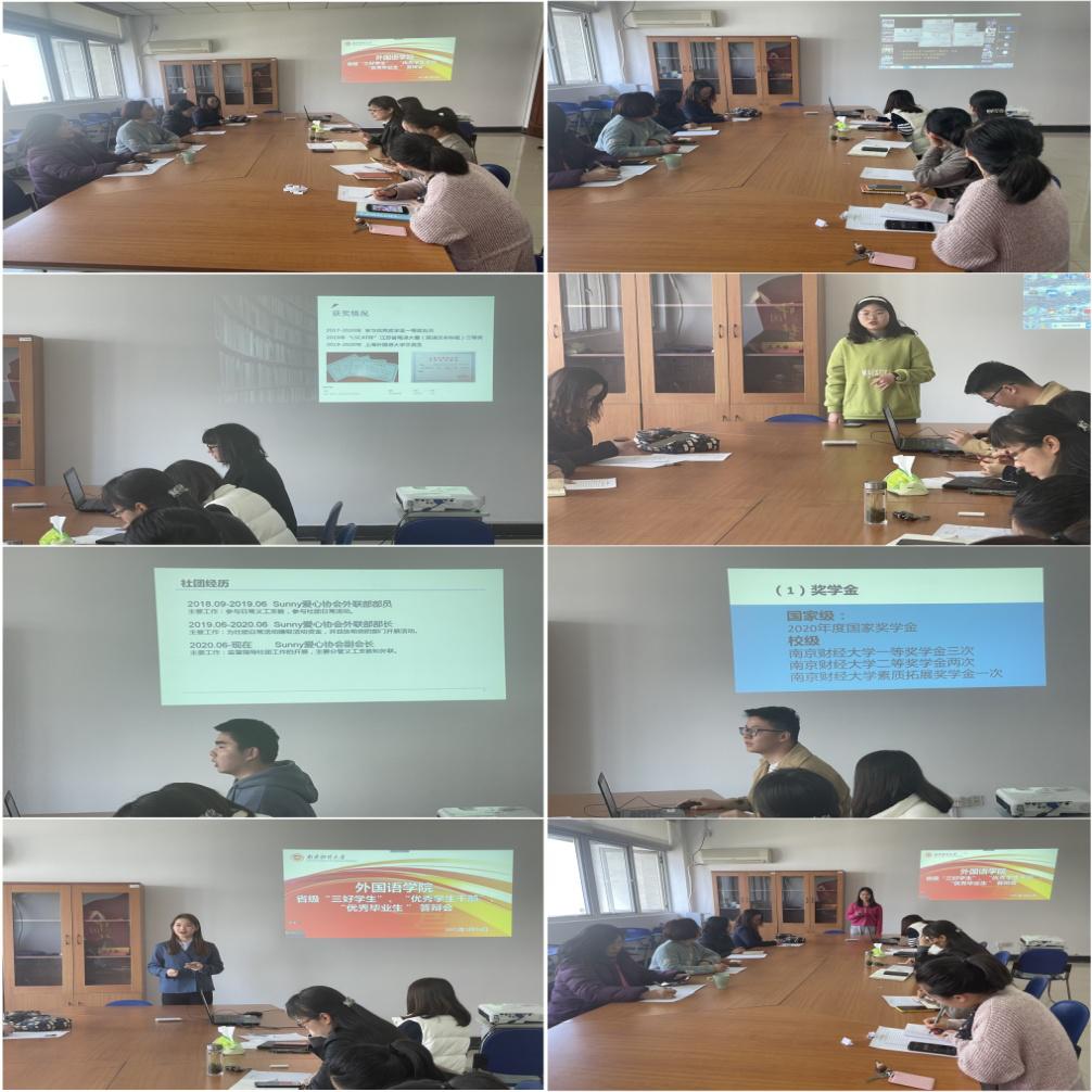 3月26日,我院2021年省级评优答辩会在德正楼325召开。院教工第一党支部书记陈芙蓉,第二党支部书记蒲婧新,院工会主席李丽萍,英语2001班班主任程水英,院学工办主任、分团委书记李超雅,辅导员蒋颖异和黄婕出席答辩会并担任评委,会议由公司党委副书记刘英华主持。