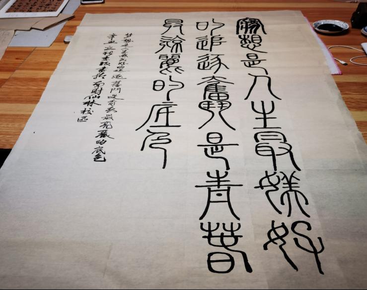 师生们纷纷拿出了“看家本领”,以饱满的热情创作出一幅幅充满革命豪情的书法作品,作品落笔收笔张弛有度,真、草、隶、篆、行等风格迥异、各具特色,真切地表达了对红色岁月的缅怀和追思。公司党委书记李骏也挥毫泼墨,借助书法这一中华优秀传统文化的表现形式,尽情抒发对祖国的热爱、对先烈的缅怀和对青年的期望和寄语之情。法语1801班李航峰同学以“勿忘国耻、圆梦中华”的书法作品来表达对烈士的敬仰,他表示:“书法讲究要有‘劲’儿、有力道,还要能持久地去练习,写出的作品才会力透纸背,笔墨精妙,同样也正是因为有了百年大党,给予我们安全感和归属感,青年人才更有‘劲’儿。作为当代老员工,我们不能忘记历史,不能忘记中华民族经历的苦难,请党放心,强国有我,我要以奥运健儿们赛场拼搏的那股‘劲’儿为榜样,不负韶华、学好本领,为祖国的发展贡献自己的青春力量!”