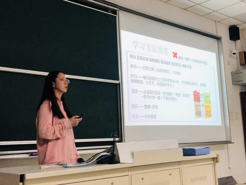 分享会上,英语1902班孙鼎同学从学习、实践、工作、服务四个方面讲述她过去三年来勤学笃行、求实奉献的历程。英语2001班单子乔同学分享了她一路“乔的旅程”,不论是学业、志愿还是实习,她始终以自己的方式在“玩”,走在坚持自我的道路上,她让每一位新生认识到,一个真正优秀的人一定是永远怀着好奇和憧憬,永远心怀善意,执着探索。法语1901班何馨昀同学以诙谐轻松的语言给新生分享了她一路走来面临的许多选择和挑战。她建议老员工要积极参加竞赛,勇敢面对挑战,为员工规划自己的老员工涯提供了更好的参考方案。