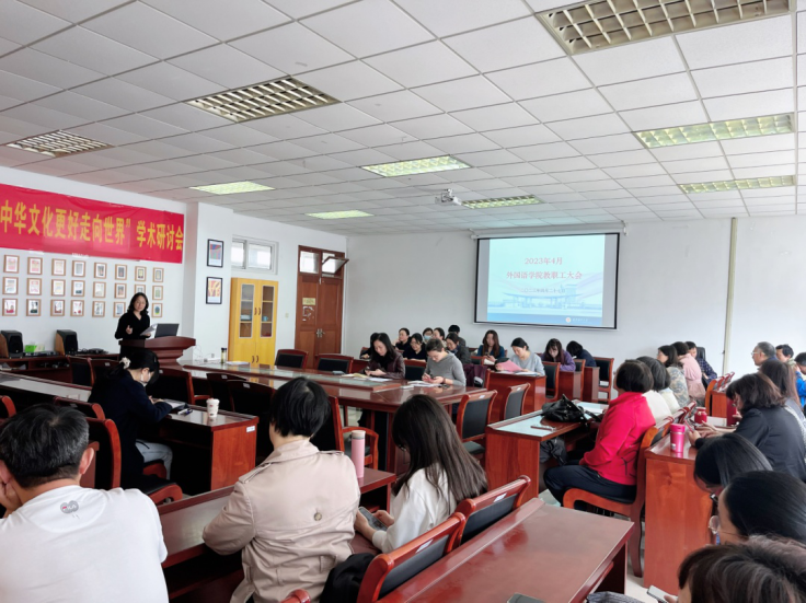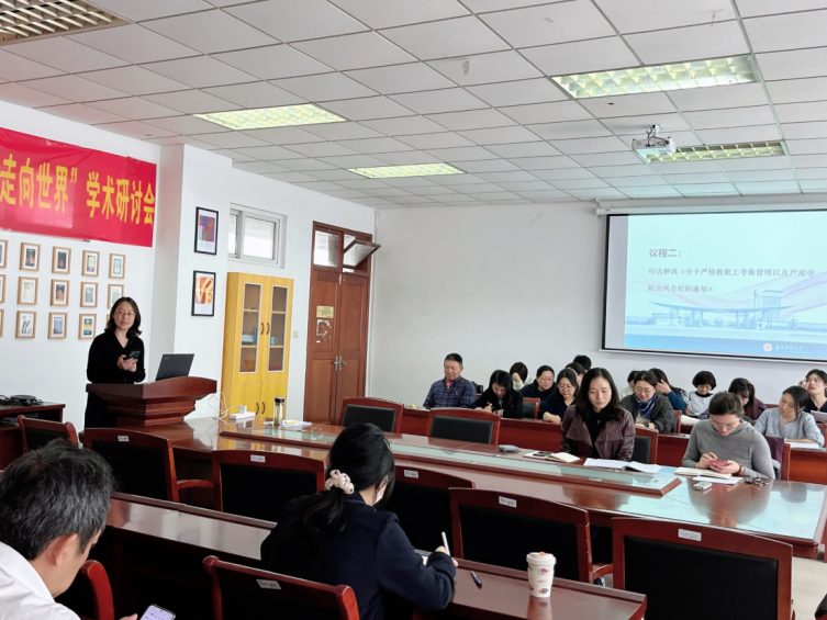 英语系主任张晓甜向全院教师传达了公司近期本科教学工作会议的内容,包括:第三批国家一流本科课程申报准备工作、期末考试组织工作、期中教学检查事宜、专业审核评估,以及公司两位教师教学事故的处理通报等。教学顾问邵怡向大家解读了相关教学规范与纪律,传达了近期教学检查、教学座谈会意见反馈等情况,鼓励老师们以昂扬的态势迎接本科公司产品评估的到来。