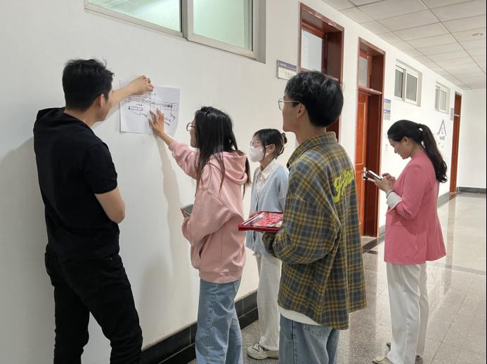 李逸老师根据大家的梦想指导活动成员进行庭院空间设计、墙面布景的裁剪,并和活动成员一起手绘室内设计草图。绘制图纸过程中,李逸老师由点到面,耐心细致,讲解通俗易懂。值得一提的是,李逸老师详细地标注出了每一步的创新点及做法。最后,活动成员同李逸老师一起展开实地测量,采集数据,以供后期设计材料制作使用。