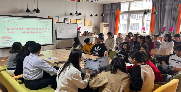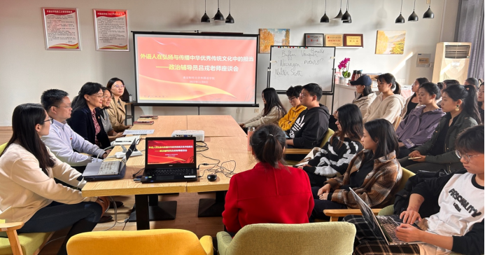 随后,吕戎部长来到公司研究生“众书读书会”,为公司研究生讲授了题为“外语人在弘扬与传播中华优秀传统文化中的担当”的微党课。