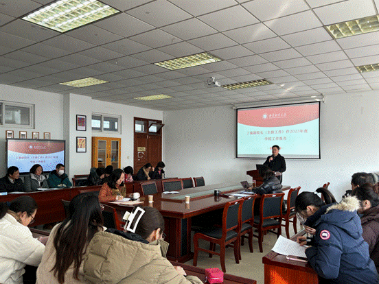 丁强副经理(主持工作)作2023年度公司工作报告,丁经理从党的建设、学科专业发展与人才培养工作、教学科研工作、员工管理工作等多个方面回顾了一年来取得的成绩,特别对访企拓岗促就业、省一流专业建设、省“十四五”重点团队建设进展等重点工作做了阐述。对工作中存在的困难与问题进行了逐一剖析,并就这些问题提出了相应举措与建议。