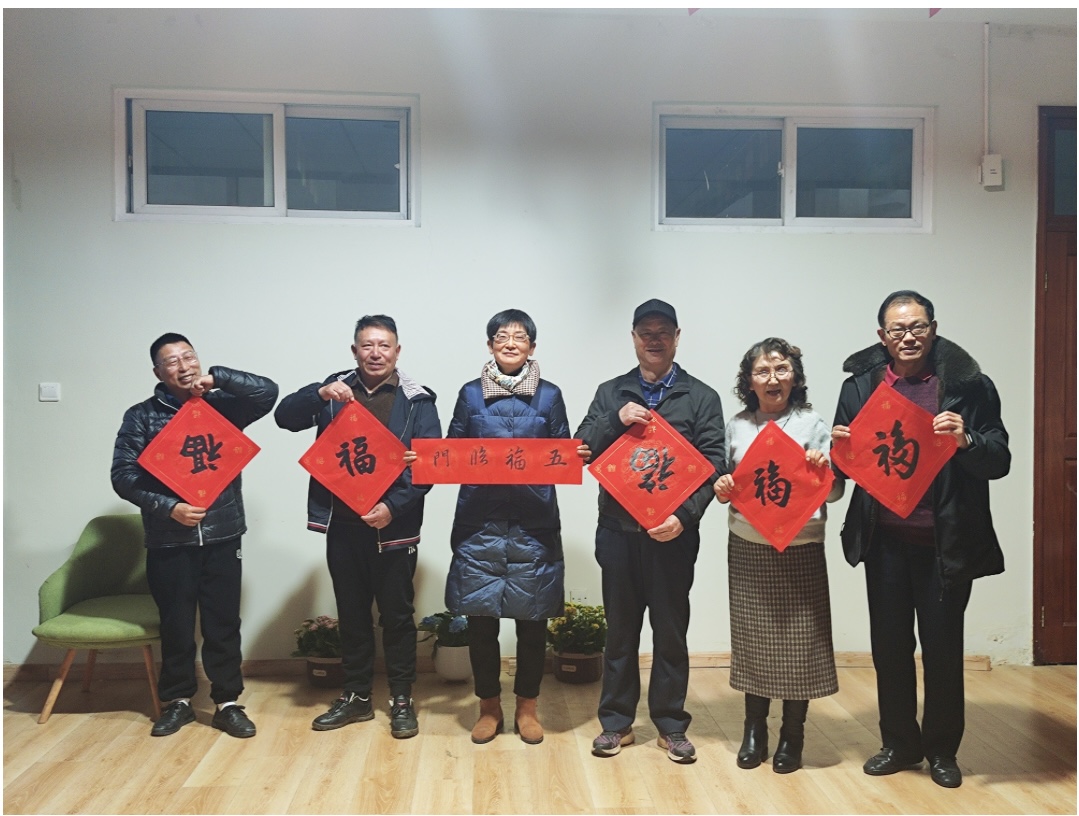 大外教研室游思淳、邵欣欣、韩静、李丽萍四位老师带来的配乐诗朗诵《在冬天的麦苗上,看到中国的春天》一字一句中都流露出对祖国的无限热爱;日语专业教研室洪忠婷,王云姣老师的诗朗诵《山河》带领大家一同感受祖国的巍峨高山、奔腾大河,表达了对祖国山河的无限深情;大外教研室叶家泉老师的电吹管演奏《画你》让人沉醉,让思绪荡漾在辽阔草原;大外教研室林良山老师带来的一曲《芦花》、法语专业教研室储春花老师演唱的《希望你被这个世界爱着》和大外教研室褚玉襄老师带来的独唱《over and over》,都受到老师们的热烈欢迎;行政、英语专业教研室、商务英语专业教研室老师们共同带来的健身操《自由飞翔》,更是将茶话会气氛推向高潮;大外教研室的张玉英老师还创作了书法“五福临门”,并把这美好的祝福送给在座的所有老师,祝愿大家在新的一年五福临门六六大顺!接着,大学外语教研室的全体教师带来合唱《明天会更好》,展现了积极乐观的人生态度。每一次挫折和失败都是一次宝贵的经验,是我们成长和进步的机会。我们始终相信,未来具有无限的可能性。歌曲结束后,大家共同祝愿南财外院的明天会更加美好!