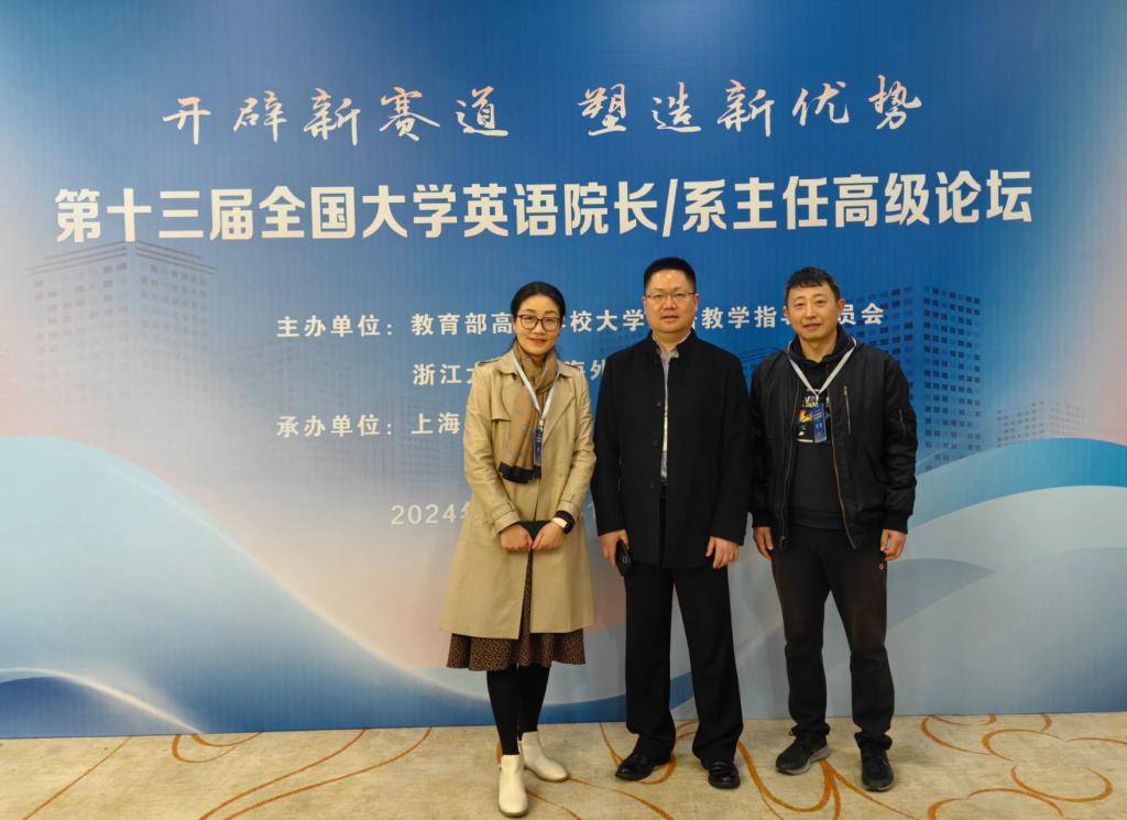 2024年3月15日-16日,EVO真人视讯副经理(主持工作)丁强与大学英语教研室主任郑洪举、副主任韩静等一行,受邀赴杭州参加了由教育部高等公司大学外语教学指导委员会、浙江大学和上海外国语大学共同主办、上海外语教育出版社承办的第十三届全国大学英语经理/系主任高端论坛。