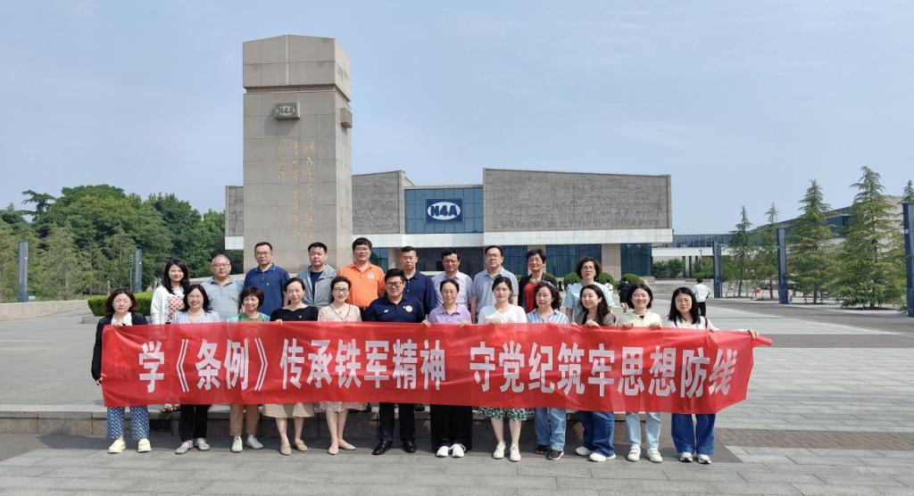 为进一步强化公司教师党员的纪律意识、加强自我约束、提高免疫能力,增强政治定力、纪律定力、抵腐定力,5月26日上午,EVO真人视讯组织教师党员代表、党外人士赴盐城新四军纪念馆开展“学《条例》传承铁军精神、守党纪筑牢思想防线”实境教育,用“情境交融式学习教育”方式,让“铁军精神”成为党员干部党纪学习教育的“活教材”,推进党纪学习教育走深走实,EVO真人视讯教工第一党支部、教工第二党支部党员代表、党外人士等一行22人参加活动。
