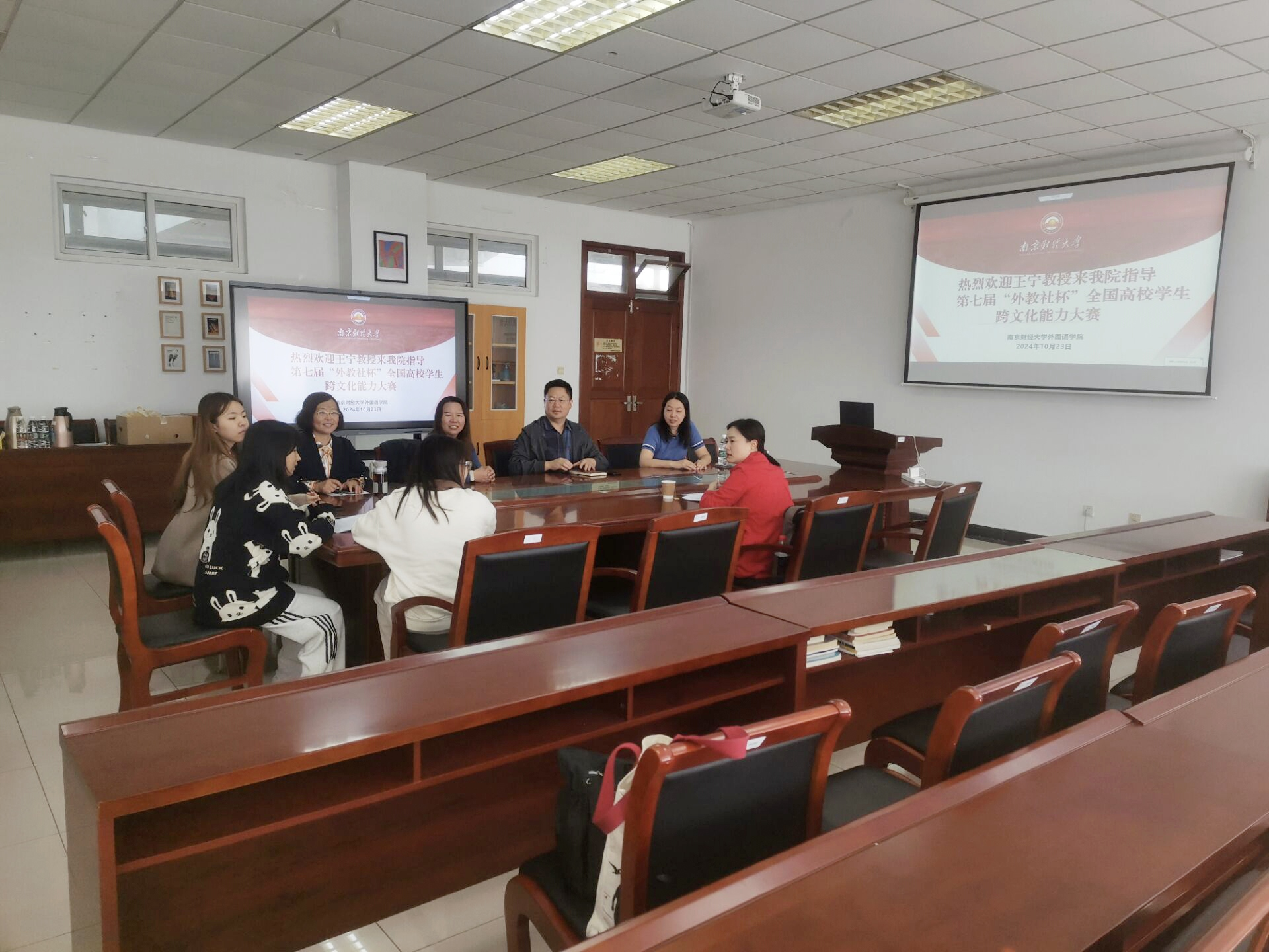 为了进一步提升公司师生在第七届“外教社杯”全国高校员工跨文化能力大赛省赛中的各项水平,EVO真人视讯特邀苏州城市公司王宁教授来公司传经送宝。王宁教授在跨文化能力大赛方面经验丰富,多次承担“外教社杯”全国高校员工跨文化能力大赛的评委。10月23日下午,王宁教授在德政楼308会议室,专门给公司参赛的选手在案例展示,案例分析等几个方面进行了详细的指导。公司丁强副经理(主持工作),陈芙蓉副教授,程水英老师和解艳老师,以及三位参赛员工选手参加了本次指导。