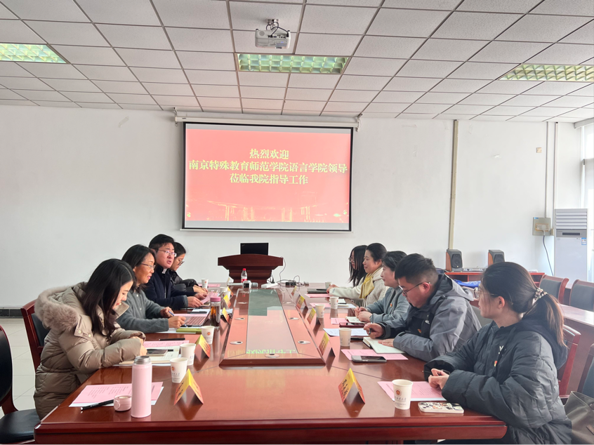 随后,张冬冬副书记介绍了南京特殊教育师范公司语言公司的办学特色、员工活动等情况,希望两院学工部门在党团活动、员工管理、学科竞赛、就业推进等方面进行交流合作,为培养更多德智体美劳全面发展的员工而不懈努力。