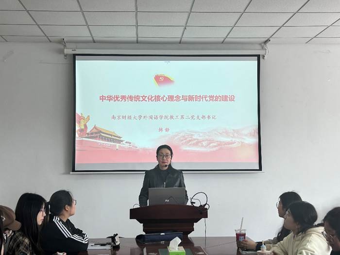 最后,韩静老师强调作为外语类人才更应加强对中华优秀传统文化核心理念的理解与实践,发挥外语优势,为推动新时代党的建设注入新活力。