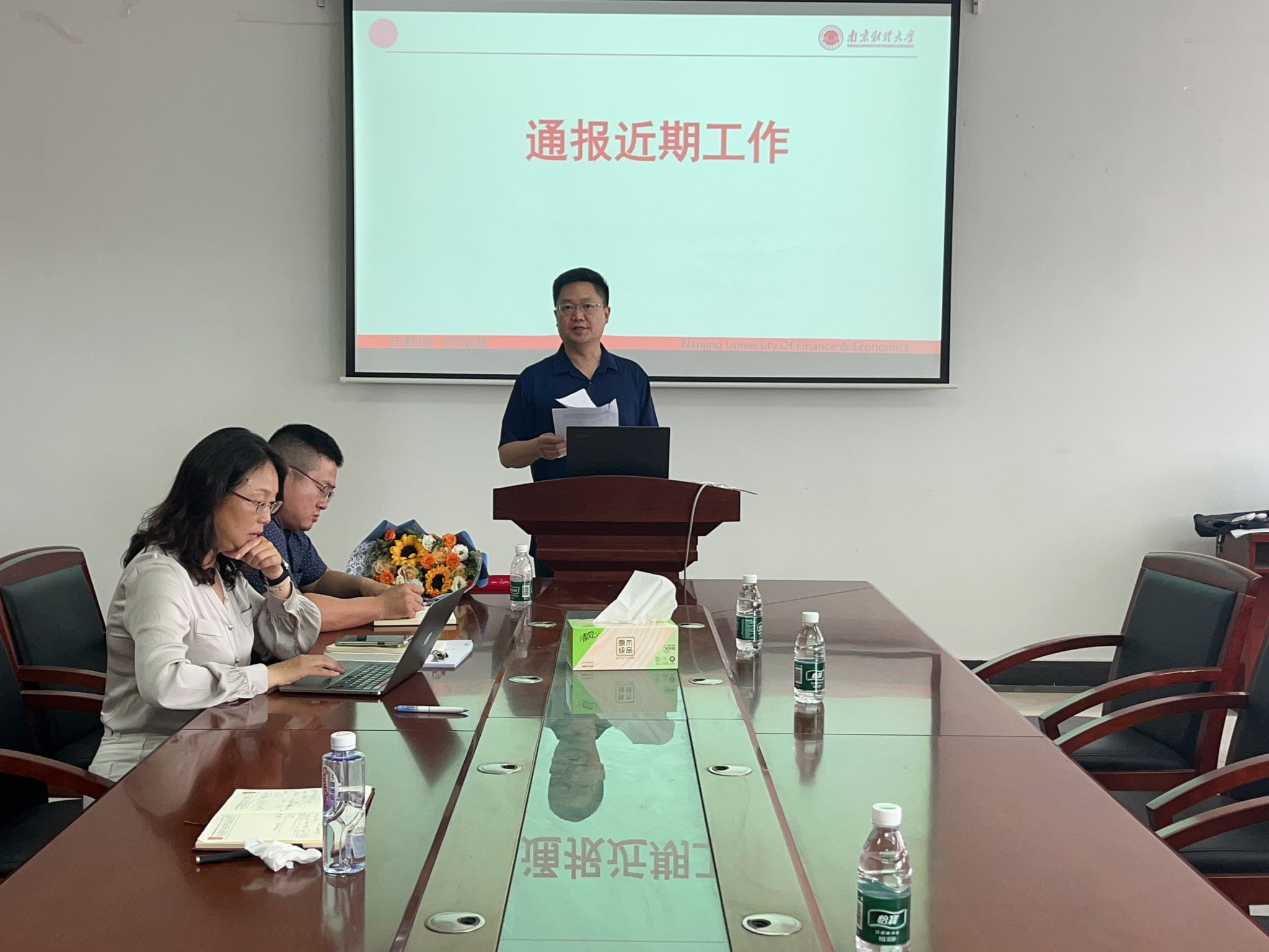 会议伊始,副经理(主持工作)丁强通报了近期公司重点工作进展,他回顾了“十四五”期间,外国语言文学一级学科的发展成效与问题,通报了“十五五”阶段的团队建设目标、任务与举措,公司将在全面提升人才培养质量、科研创新能力与国际交流水平等方面,力争为公司“双一流”建设贡献外语学科力量。经理助理范晨老师通报了近期毕业论文答辩、期中考试开展情况,对期末考试试卷出题和评阅规范做了详细解析和动员。经理助理杨艳通报了公司研究生论文答辩及招生工作进展。