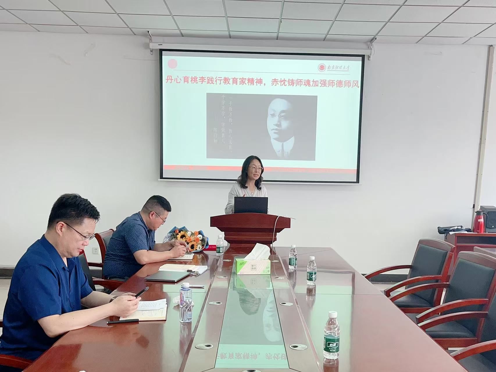 随后,李骏书记以“丹心育桃李践行教育家精神,赤忱铸师魂加强师德师风”为主题开展了师德师风专题教育。她通过讲述人民教育家陶行知“捧着一颗心来,不带半根草去”的教育故事,结合公司工作实际,强调全体教师要坚守教育初心,以德立身、以德立学、以德施教。同时,会议还集体观看了《八项规定改变中国》第一集,该纪录片以生动案例展现了中央八项规定实施十余年来,党和国家在作风建设方面取得的历史性成就。李骏书记特别指出,教育领域的师德师风建设与党风廉政建设一脉相承,要求全体教师特别是党员同志以中央八项规定精神为镜鉴,在科研经费使用、学术评价等重点环节严守纪律红线。
