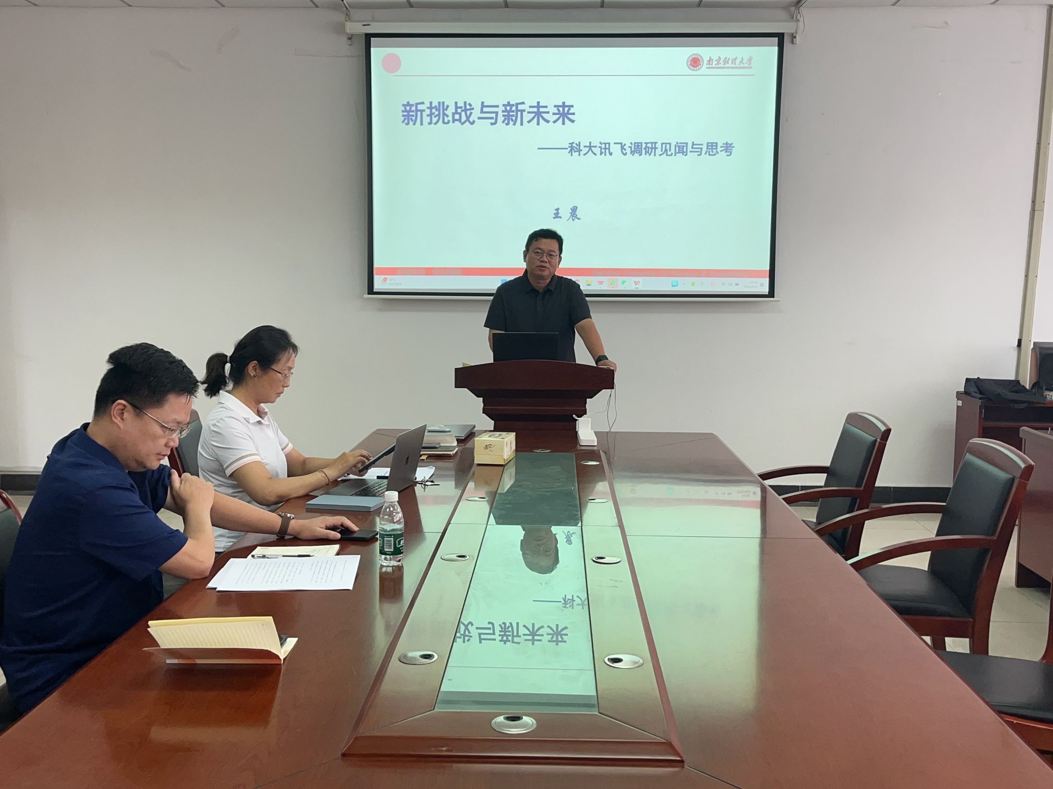 跟岗锻炼干部王晨副经理作专题报告。他以《新挑战与新未来——科大讯飞调研见闻与思考》为题,分享了暑期赴科大讯飞总部调研人工智能赋能外语教学的成果,对AI技术在语言智能评测、个性化学习路径规划等领域的应用场景做了详细解读和说明,为公司数字化转型提供了实践参考。