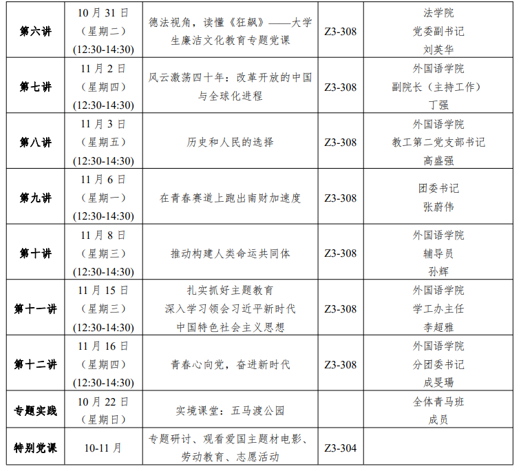 1.分团委负责青马班学员的各项培训活动(尤其是课外活动和社会实践活动)的组织、检查监督工作;