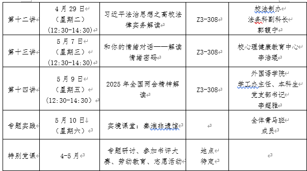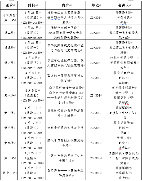 通过集中授课、专题研讨、自主学习、实践锻炼、特色主题活动、考试等形式,把课堂教育与第二课堂、理论学习与社会实践有机结合起来,其中集中授课时间不少于24个学时。