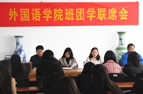 3月2日中午,公司在专三308会议室召开新学期首次班团学联席会。院分团委、员工会员工干部,各社团负责人,各班级班长、团支部书记出席了会议。本次会议的目的是布置新学期的重点工作,规划新学期的各项活动。会议由院学工办主任薛桂芳主持。