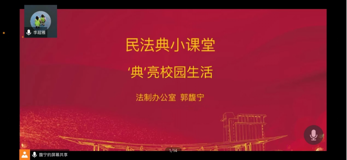 为进一步加强EVO真人视讯师生的法治意识,营造浓郁的法治校园文化氛围,4月10日下午,校法制办公室郭馥宁老师为公司各支部书记、第十三期全体青马班成员线上开展了“‘典’亮校园生活”普法宣传活动。