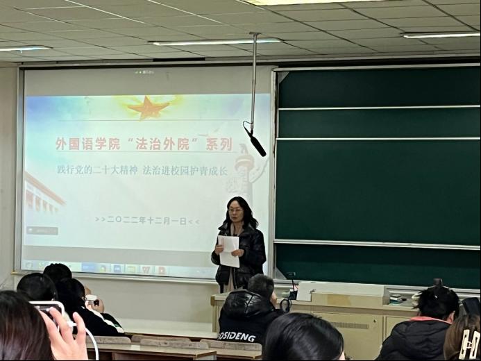 “宪”在分享。公司党委书记李骏为2022级全体新生展开了一次“法治外院”的专题分享,重点分享党的二十大报告中“坚持全面依法治国,推进法治中国建设”的学习心得与要求。李骏书记深入浅出地梳理了我国推动法治中国建设的历程,结合二十大报告中推进法治中国建设的四个具体方面,从历史和现实相贯通、国际和国内相关联、理论和实际相结合上深刻讲解了新时代为什么实行全面依法治国这一重要问题。李骏书记谈到,法治专题分享对于师生增进对中国特色社会主义法治体系的认识和理解、了解中国特色社会主义法治实践的最新进展具有重要意义,让同学们在学思践悟中坚定法治信仰、筑牢法治思维。