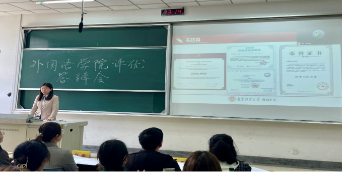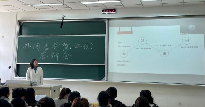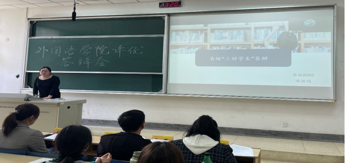 本次答辩本着“公平、公正、公开、择优”的原则,采取公开展示的方式,由评委们打分从候选人中选出最终名单。会上,7名候选人结合PPT,在专业学习、科创竞赛、员工工作以及社会实践等方面,展示个人成就及班级建设成果。经过精彩角逐,最终推荐英语2001班单子乔为“省三好员工”候选人,英语1901班姚远为“省优秀毕业生”候选人。