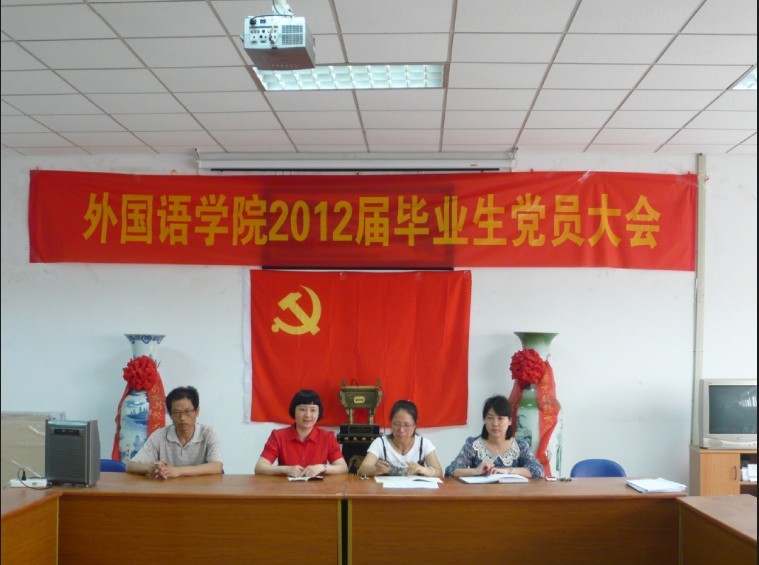 2012年6月9日下午,公司在法政学科楼308会议室召开了毕业生党员会议。公司党总支书记肖辉教授、团总支书记金立林老师、辅导员孟德明和薛桂芳参加了会议。会议由肖辉书记主持。