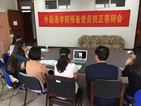 5月27日上午,公司本科生党支部预备党员转正答辩会如期进行,而此批申请转正的英语1201班宋瑶同学于去年5月加入中国共产党,9月参与公司的3+1项目前往英国南安普顿大学就读,无法到场参加答辩。经过讨论,公司党委和本科生党支部决定采取视频答辩的方式为宋瑶同学开展预备党员转正答辩会。