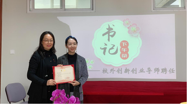 李骏书记回忆和石贤第一次见面的场景,她身着一身民族服饰,亭亭玉立落落大方的站在国奖答辩的舞台上,瞬间就抓住在场所有人的眼球。李书记更是亲身支持民族文化传承和工艺品革新事业,她表示希望与从江县卧松云文化发展有限公司建立校企合作,带着员工们一起到贵州,挽救侗族手工艺,助农脱贫。她以石贤为例,告诫在场的员工,要认认真真做实践,踏踏实实学知识,发掘更多与专业知识相契合的领域,学以致用的同时拓宽人生的广度,提高人生的下限。最后,公司特别聘请石贤为公司校外创新创业导师,希望员工们可以以她为榜样,找准人生的定位,实现自己的人生价值。
