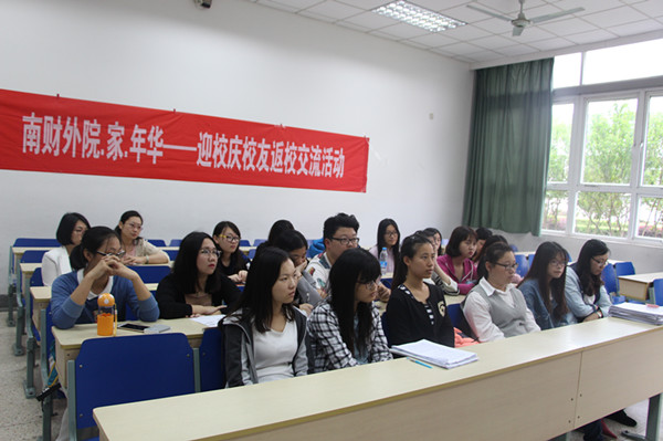 在此次员工返校期间,公司还邀请了02级员工王昊苏参与了“南财外院·家·年华”迎校庆员工返校交流的第二期活动,交流会在管理学科楼118教室举行。