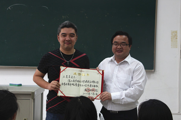 随后,返校员工播放了精心制作的视频,一张张大学时代的照片让员工们唏嘘感慨,员工代表刘佳、丁婷分别发言,他们介绍了毕业十年来同学们的发展情况,表达了对老师的感恩及对母校六十周年校庆的祝福。员工们还为当年的任课老师精心准备了“最佳老师”奖状,令老师们感动不已。座谈会后,返校员工与老师们在校图书馆前合影留念。