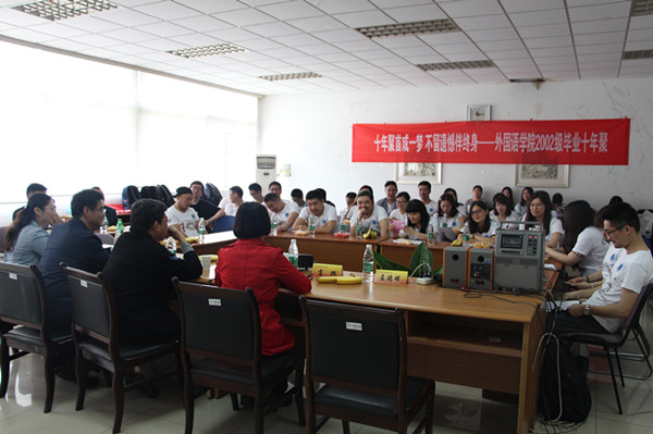 6月4日下午,公司02级英语专业的三十余名员工返校举办毕业十周年聚会共叙青春往事。返校座谈会在法政学科楼308会议室举行。公司经理肖辉、国际合作与交流处处长黄能、员工会秘书处处长邓维康、公司党委副书记李慕原及辅导员孟德明出席了座谈会。座谈会由公司党委副书记李慕原主持。