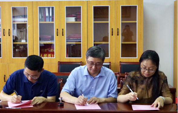 随后举行了公司与蓝鲸培训公司有限公司南京分公司捐赠签约仪式。签约仪式后,公司领导带领蓝鲸培训公司有限公司南京分公司一行人参观公司文化长廊和Tom书吧,介绍公司人文发展特色和教学理念,并合影留念。