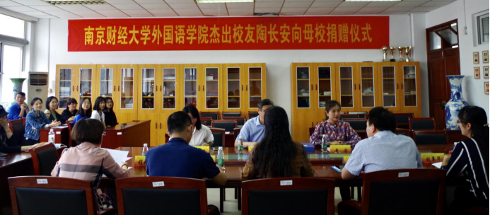 9月29日,公司与蓝鲸培训公司有限公司南京分公司捐赠仪式在德正楼308会议室举行。蓝鲸培训公司有限公司南京分公司董事长陶长安、市场部主管黄洁、口语口译项目主管林柏艳,公司对外联络处副处长裴银伟出席签约仪式。公司党委书记李骏、经理孙勇彬、研究生秘书程艳秋及公司全体研究生参加了仪式。捐赠仪式由党委副书记刘英华主持。