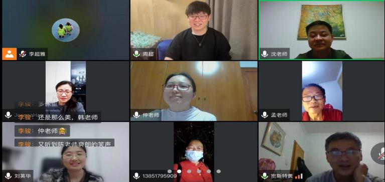 随后,各位员工代表积极发言并就学习和就业等内容与毕业生周超进行交流探讨,并针对同学们最关注的外贸翻译岗位要求、薪酬体系和公司福利等方面进行了系统的讲解,并与员工进行线上互动,针对同学们对互联网行业及未来职业前景发展提出的疑问,进行一一解答。解答之后,同学们在线进行了乐思途睿专场招聘会,并进行了线上授牌仪式。交流会的最后,周超“遇见”了昔日自己的大学老师,大家在云端互道珍重互相祝福,并共同期待在合适的时机,重返母校再叙情谊。