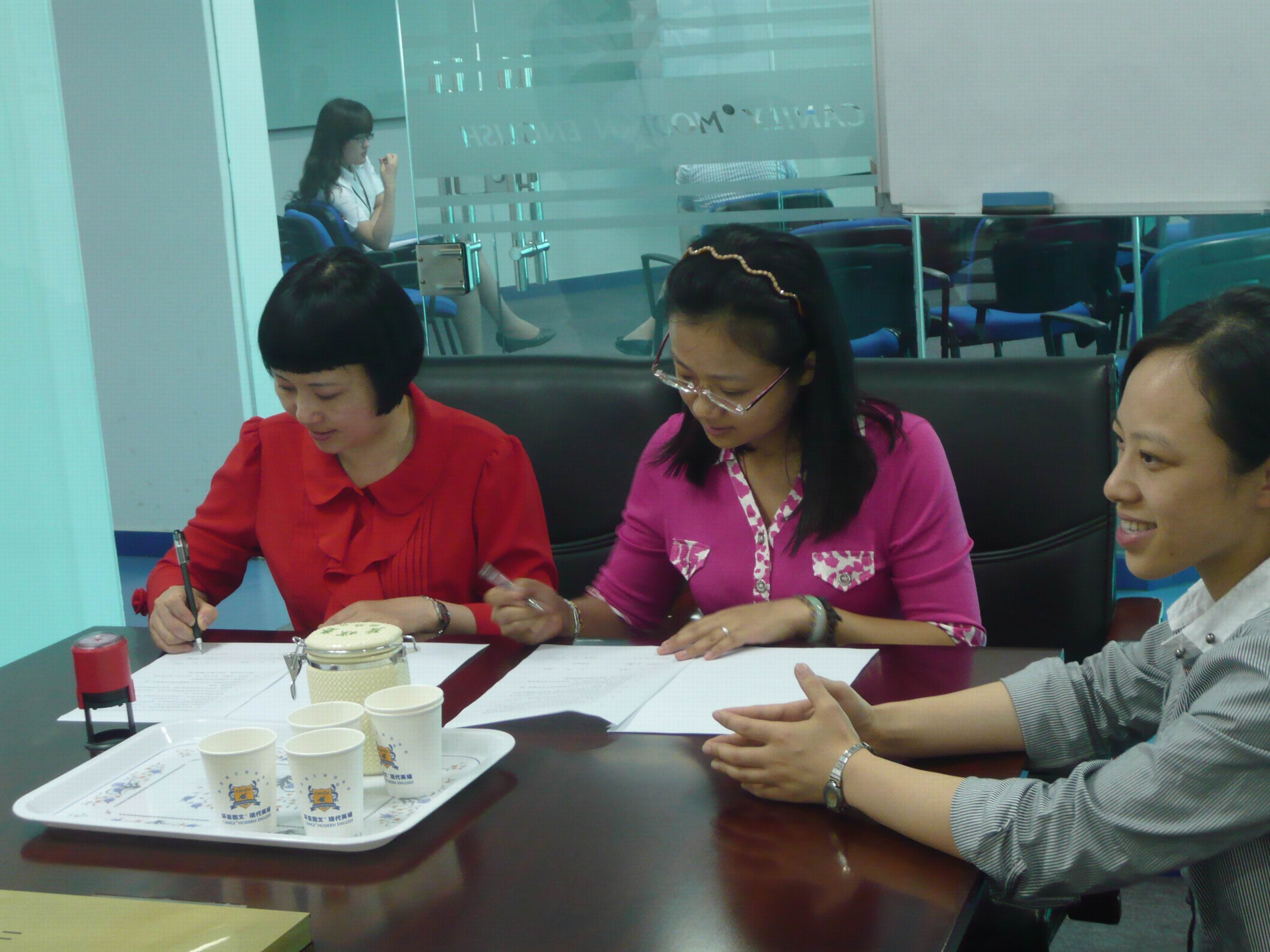 王薇副董事长和肖辉书记代表双方签定了就业实习基地协议。随后在王副董事长的带领下,我们参观了南京琅文培训公司,并对该校的招生规模、团队、设备及教学运行情况有了进一步的了解。